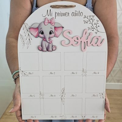 Letrero madera Baby Minnie Arcoiris con mariposa